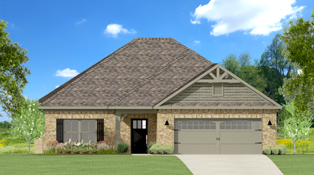 This new single-story home design combines comfort and style. An open-plan layout connects the kitchen, breakfast room and Great Room, which features a door providing direct access to the covered porch. A formal dining room off the foyer is ideal for meals of every occasion from intimate lunches with family to holiday feasts with guests. The owners suite and the two secondary bedrooms are situated on opposite sides of the home for enhanced privacy.