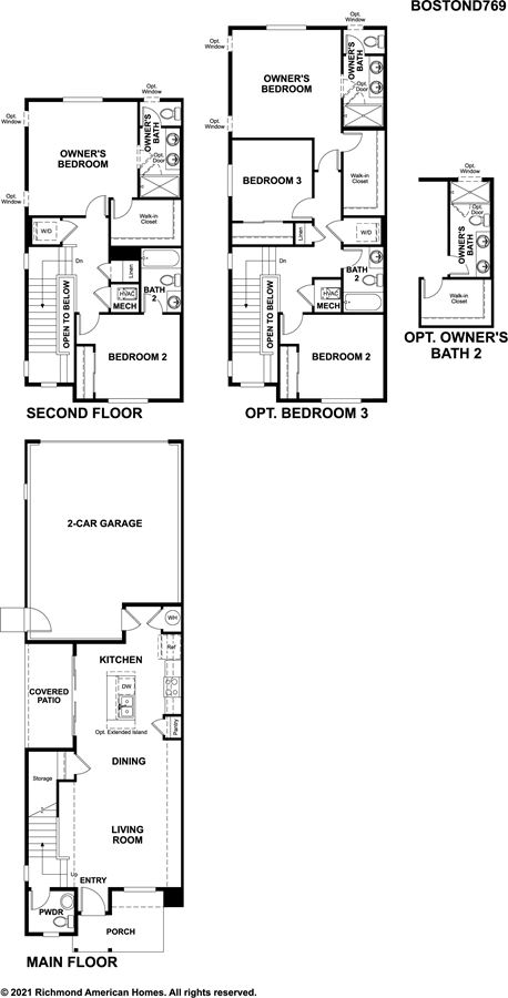 The main floor of the beautiful Boston plan offers a convenient powder room, open living and dining rooms and a well-appointed kitchen featuring a roomy pantry, a center island and an adjacent covered patio. Upstairs, discover a laundry, two large bedrooms with a shared bath and an elegant master suite boasting an oversized walk-in closet and attached bath with double sinks. A 2-car garage is also included.