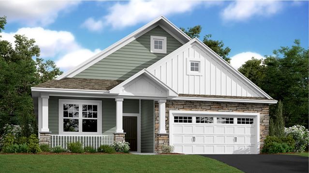 This new single-story home showcases a contemporary design. It features an open-plan layout among the Great Room, dining room and kitchen in addition to a mudroom with a walk-in closet. Three restful bedrooms include a luxe owners suite.
