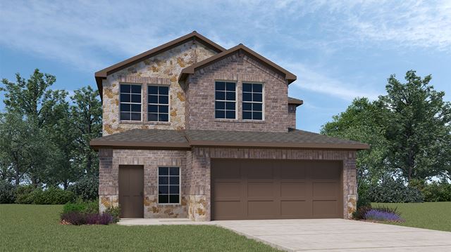 This home plan can feature a professionally landscaped front yard with a lighted front porch and back patio. Enjoy the gourmet kitchen plus the large bedroom suite with an ensuite that includes a 5-foot shower, chrome faucets and a mirror over full length of vanity. Home an energy efficient heating and cooling system per community guidelines and weather stripping around exterior doors. Bonus features include attic pull downstairs, one access. Photos shown here may not depict the specified home and features. Elevations, exterior/ interior colors, options, available upgrades, and standard features will vary in each community and may change without notice. May include options, elevations, and upgrades (such as patio covers, front porches, stone options, and lot premiums) that require an additional charge. Call for details.