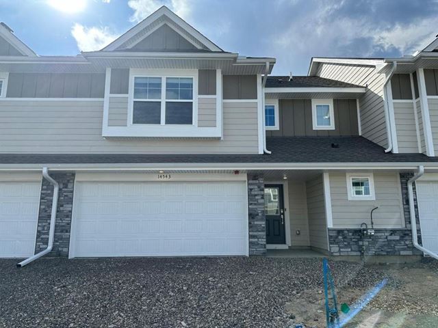 This new townhome is a two-story interior unit with a family-friendly design. The first floor features an open-plan layout among the Great Room, dining room and kitchen, which has a rectangular center island. A large coat closet in the foyer offers convenience. Upstairs are three bedrooms including the owners suite and a centrally situated loft that adds shared living space.