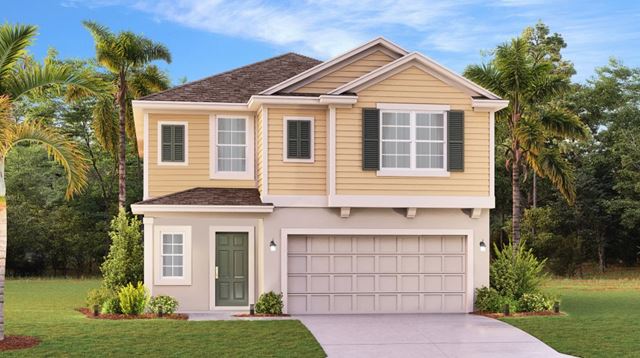 This two-story home features a contemporary open space layout in the dining room, kitchen and family room, with easy accessibility to the patio for outdoor relaxing. The second floor is occupied by a central loft for additional shared living space, while down the hallway are four secondary bedrooms arranged around a full-sized bathroom with convenient dual sinks. In a private corner is the luxe owners suite.