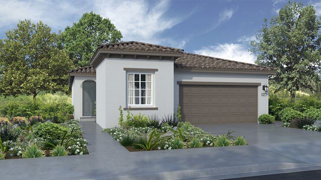 A comfortable single story, this home provides an open layout that flows the kitchen, dining room and Great Room together, leading to a covered patio for indoor-outdoor living. Nearby are the luxe owners suite with a private bathroom and a secondary bedroom. Another secondary bedroom rests near the entrance, ideal for overnight guests or as a hobby space.