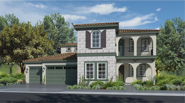 This new two-story home offers ample space for the whole family to thrive. The first floor has a Great Room for get-togethers, a breakfast nook for quick bites, a dining room for memorable meals, a bedroom for guests and a covered patio for outdoor living. Upstairs are bedrooms, a versatile loft and two balconies.