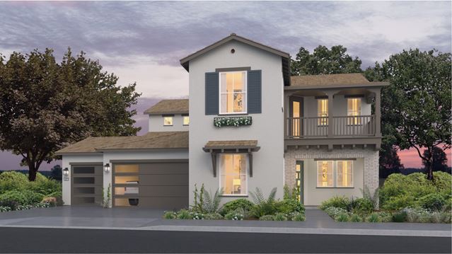 This new two-story home offers ample space for the whole family to thrive. The first floor has a Great Room for get-togethers, a breakfast nook for quick bites, a dining room for memorable meals, a bedroom for guests and a covered patio for outdoor living. Upstairs are bedrooms, a versatile loft and two balconies.