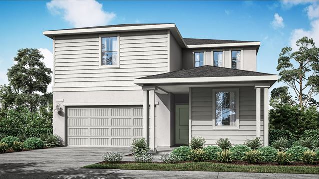 This two-story home is the largest plan in the collection and offers a total of six bedrooms, the perfect set-up for large or growing households. On the first floor, a gourmet kitchen with an expansive center island overlooks the Great Room and sun-drenched dining room. Through sliding glass doors off the main living area is a covered patio for alfresco dining and outdoor adventures. One secondary bedroom is located on the first floor, while five more can be found upstairs.