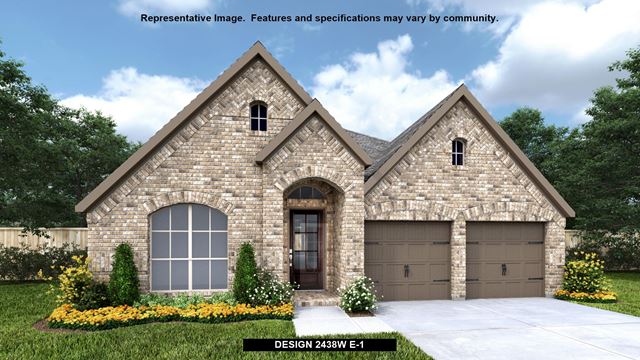 Entry welcomes with 12-foot ceiling. Game room and home office frames coffered extended entry. Kitchen and morning area open to spacious family room with wall of windows. Kitchen features corner walk-in pantry and inviting island with built-in seating space. Primary suite includes dual vanity, garden tub, separate glass-enclosed shower and large walk-in closet in primary bath. All bedrooms feature walk-in closets. Covered backyard patio. Two-car garage. Representative Images. Features and specifications may vary by community.