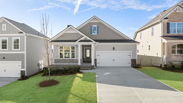 The Clifton is a floor plan in The Cottages of Lake Lanier, a lakeside community in Gainesville, GA. The 3 bedroom, 3 bathroom plan is built in this community with either a walk up level above or a finished basement below the main level for added living space. With a 2-car garage and covered entryway, the curb appeal of the Clifton is pure charm. Through the front door youll pass a guest bedroom, full bathroom, and flex space to be utilized as either a dining room or home office on your way through to the great room. Stacked-stone, wood-burning fireplaces add to the charm and provide a lovely focal point for the space. A seamless flow into the well-appointed kitchen extends the entertaining space. Granite countertops, stainless-steel appliances, a large island, and great flow all add up to a kitchen any cook will enjoy spending time in. The primary bedroom sit...