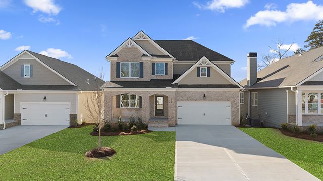 Introducing the Windsor, a two-story plan offered at the Cottages of Lake Lanier in Gainesville, GA. The 2,602 square foot home boasts 4 bedrooms, 3.5 bathrooms, and a two-car garage. The three unique exterior elevations ensure variety and style options to suit a range of preferences. The Windsor aims to immediately impress when you step off of the front porch into a two-story foyer. The adjacent formal dining room flaunts coffered ceilings and a large window shaded by the front porch. The space would also make a handsome office to better suit the needs of the homeowners. A large powder bathroom is tucked away but still convenient for guests to use. The stunning kitchen flows seamlessly into a breakfast nook and spacious family room with trey ceilings and a stunning stacked-stone, wood-burning fireplace. The kitchen itself will stop anyone in their tracks wit...