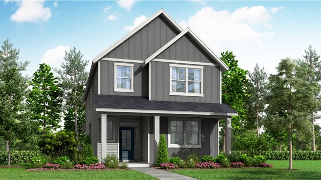 The first floor of this two-story home showcases an open layout that features a Great Room with a fireplace, a nook and a modern kitchen with a patio attached. Upstairs are three bedrooms ideal for families or hobby spaces and the owners suite with a full bathroom.