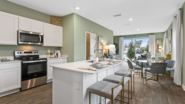 Come see how the Greyson townhome plan lives so much larger than its square footage! This beautiful plan features approximately 1,395 square feet, with three bedrooms, 2.5 bathrooms. The open concept layout includes a large kitchen, dining room and gathering room. At the heart of the kitchen is a large bar where homeowners will enjoy preparing meals while entertaining family and friends. The abundance of natural light coming through the sliding doors makes this home come alive with natural light. The main suite has a spacious bathroom with vanity and large walk-in closet. Laundry is also located upstairs for easy access. The Greyson offers future homeowners an excellent new construction home with energy-efficient features in neighborhoods across North Florida!