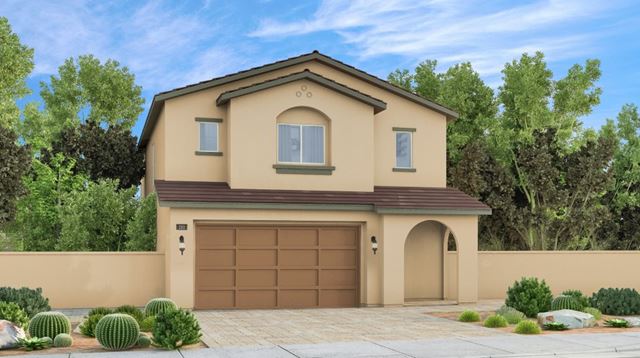 A two-story home with a two-bay garage, bedroom and full bathroom on the first level. The plan opens up to a dining room and living room overlooking the generous gourmet kitchen and covered patio. The second floor features two more bedrooms with a shared bathroom, laundry room and owners suite fit with dual walk-in closets.
