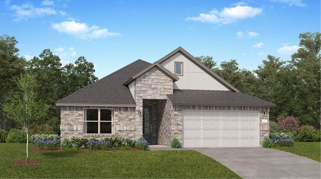 The kitchen, Great Room and dining room are arranged among a convenient and contemporary open floorplan in this single-level home, offering access to a covered patio for effortless outdoor living and entertaining. The owners suite is located at the back of the home, comprised of a restful bedroom, en-suite bathroom and dual walk-in closets. Three more bedrooms are situated down a hallway off the foyer.