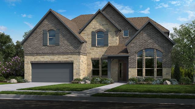 The Peridot features a study and large formal dining room with a walk through to the kitchen off of the foyer. This open concept floor plan has a gourmet kitchen overlooking the large gathering room. The island is great for entertaining. A covered outdoor living space is a way to take the party outside. The plan offers more efficient space with an over-sized laundry/utility room. The private primary suite on the first floor is a large room with a beautiful bathroom and large walk-in closet. Focused on more livable spaces all secondary bedrooms are upstairs off of the game room along with 2 full bathrooms.