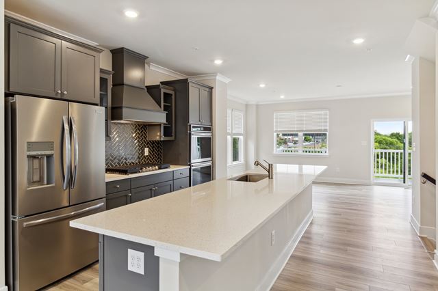 This three-story townhome features an expansive first-floor flex space that can function as a recreation room ideal for entertainment and hosting guests, with a convenient back entrance. Upstairs is an open layout shared among the family room, dining room and kitchen, along with an optional deck for outdoor living. On the top floor is the luxe owners suite with a private full-sized bathroom and two bedrooms.