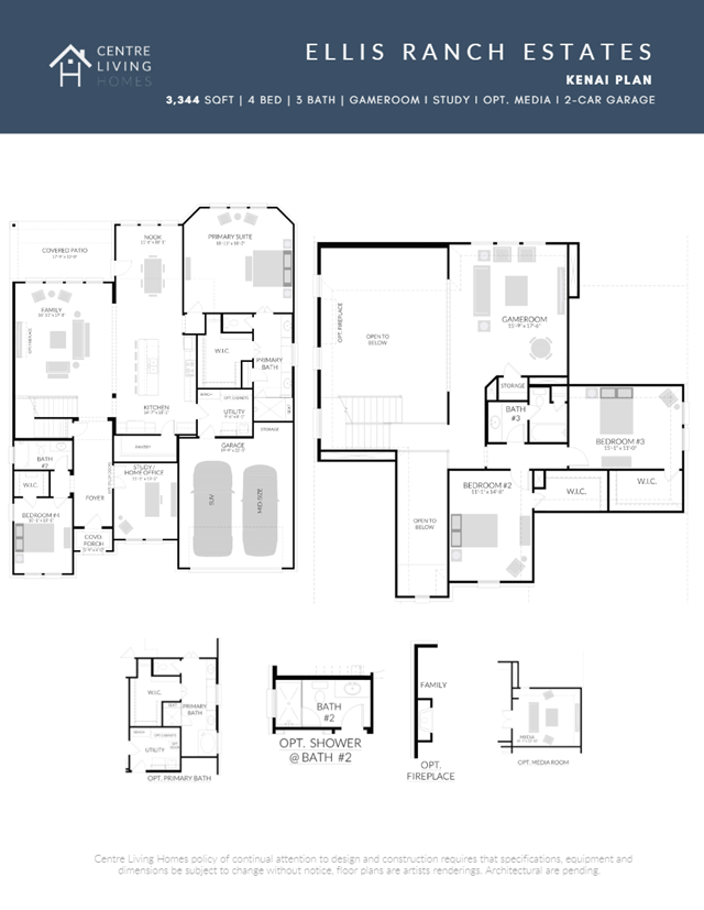 Kenai plan starts at 3,444 square feet, has 4 bedrooms, 3.0 bathrooms, and a 2-car garage. Kenai starts at $719,000. All centrelivinghomes Group home designs include luxury finishes, superior products and low-maintenance craftsmanship that ensures the home can be enjoyed for years to come. Source: Centre Living Homes