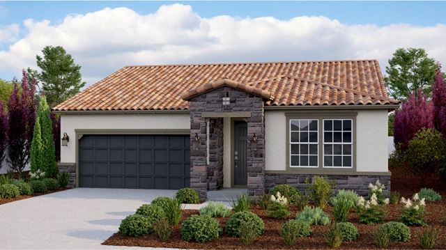 This single-story home features an open layout among the Great Room, kitchen and dining room that leads to the covered patio. Near the entry is an extra bedroom for an office or hobby area, while the owners suite is tucked away in the back.