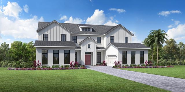 The Varen's welcoming covered porch and double-door entry open onto the stunning two-story foyer and two-story great room, with views to the desirable large covered lanai beyond. The well-designed kitchen overlooks a bright casual dining area, and is highlighted by a large center island with breakfast bar, plenty of counter and cabinet space, and ample walk-in pantry. The marvelous primary bedroom suite is enhanced by dual walk-in closets and deluxe primary bath with dual vanities, large soaking tub, luxe shower with seat, and private water closet. Central to a generous loft, secondary bedrooms feature sizable closets, two with private bath, one with shared hall bath. Additional highlights include a desirable first floor bedroom suite with closet and private bath, versatile office off the foyer, thoughtful workspace off the kitchen, convenient powder room and...