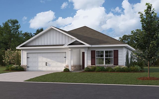 This Aria floorplan is a 3-bedroom, 2-bathroom home, offers over 1,600 square feet of comfortable living. This single-story layout optimizes living space with an open concept kitchen overlooking the living area, dining room, porch. This home includes luxury vinyl plank in all the common and wet areas. With this home, entertaining is a breeze, as this popular home features the living and dining area in the heart of the home and a porch just steps away. The spacious kitchen features stainless steel appliances, an island with granite countertops and walk-in pantry. Every bedroom has carpeted floors and a closet in each room. Two additional bedrooms share a second bathroom. This home also features a nice laundry room space with privacy doors and a two-car garage for parking or storage. Like all homes in Quail Hollow, the Aria includes a Home is Connected smart ho...