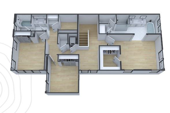With an open kitchen, spacious living area, and offset dining nook – this floorplan is the perfect utilization of space. Your kitchen features ample counter space, a large island and island with sink, and pantry area. Your private patio area directly off the living area is the perfect place to relax. Upstairs you will find three bedrooms / two bathrooms and additional flex space. Large primary bedroom with en-suite bath and large walk-in closet. Primary bath features double vanities, freestanding tub, and separate shower. Hall bath with double vanities and shower over tub, serving the other two bedrooms. The powder room on the main level is perfect for guests and convenience. Additional features include an upstairs in-unit laundry room, ample storage space, and attached two car garage. Source: Pacifica Heights