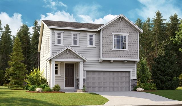 The main floor of the lovely Laurel plan offers a convenient powder room, a spacious great room and an open dining room that flows into a well-appointed kitchen with a large island and corner pantry. Upstairs, discover a central laundry, two generous bedrooms with a shared bath, and an elegant primary suite featuring a private bath and expansive walk-in closet. This home will be built with either a loft or an extra bedroom. A great room fireplace and a relaxing covered patio will be included on select homesites.