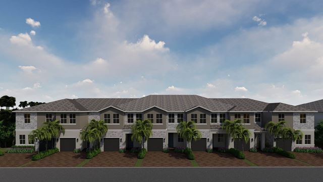 The Bonnet floorplan featured in our Merrick Square community in Pembroke Pines, Florida. The Bonnet is a thoughtfully designed two-story townhome offering 1,738 square feet of comfortable living space. Featuring 3 bedrooms and 2.5 bathrooms, this floorplan places all bedrooms on the upper level, each equipped with a walk-in closet for ample storage and organization. The main floor is designed for modern living, with a spacious and open layout that integrates the living and dining areas, ideal for both relaxation and entertaining. A convenient powder room on the ground floor enhances guest accessibility and practicality. Additionally, the Bonnet includes a single-car garage, providing both parking and extra storage space. This is the only floorplan in Merrick Square with a covered lanai. This floorplan combines functional design with stylish elements, making it...