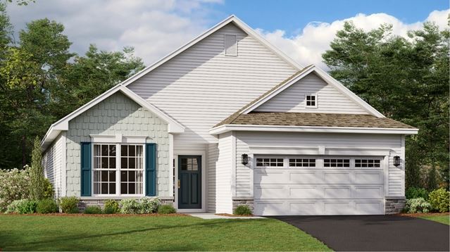 A generous open floorplan on the first level of this new home is shared among the family room, kitchen and dining room, with sliding glass doors that lead outside, conveniently laid out for the active adult homebuyer. The owners suite is tucked toward the back for privacy, while another bedroom is located right off the foyer. A versatile den with a walk-in closet completes the first floor. An attic is found upstairs.