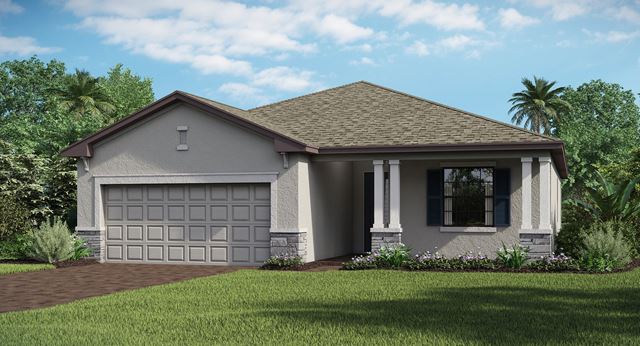 This single-story home features a split floorplan that divides the comfortable bedrooms with an open layout among the dining room, kitchen and family room. An attached lanai offers indoor-outdoor hosting opportunities, while the nearby owners suite showcase an oversized walk-in closet and a spa-style bathroom. Rounding out the home is a convenient two-car garage.