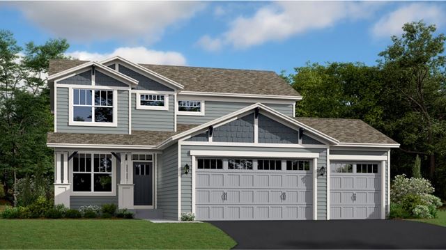 This new two-story home is a family-friendly haven that offers an open-plan layout among the great room, dining room, and kitchen. The first-floor flex room adds additional living space that could be used as a home office. On the second floor are three secondary bedrooms and a generously sized owners suite.