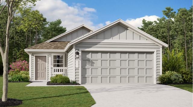 This single-story home has a simple layout that makes good use of the available space. The front door leads to an open concept living area that includes a family room, dining room and kitchen with access to the backyard. Two bedrooms share a bathroom at the front of the home, while the owners suite is tucked into the back corner with a full bathroom and walk-in closet.