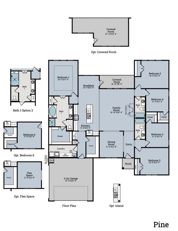 The Pine plan in Scarlett's Way boasts 6 bedrooms and 3 baths with over 2,700 square feet.