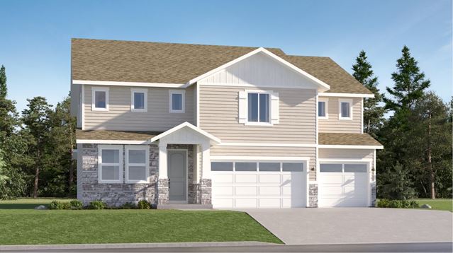 The largest home in the collection, this two-story home is the only plan with a built-in three-bay garage. On the first floor is a formal living room, open family room, kitchen and dining area and a flexible bedroom on the first level. Upstairs is a loft surrounded by four bedrooms including the luxe owners suite. Select homesites include the option to remove one of the bedrooms to create a larger loft.