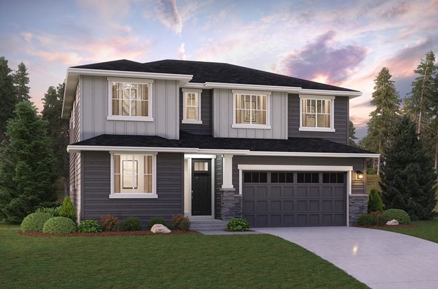 The main floor of the striking Vaughn plan is anchored by an expansive open-concept dining and great room area-flanking an inviting covered patio at the back corner of the home. Overlooking all of it, a lavish kitchen boasts a large center island and a convenient corner pantry. Toward the front of the home, you'll also find a private study, which may also be available as a downstairs bedroom. A versatile bonus room can be found upstairs, plus a full hall bath, three secondary bedrooms, and a sprawling primary suite with a roomy walk-in closet and an attached bath-featuring dual vanities and a separate tub and shower.