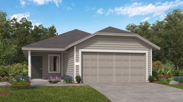 An exterior features a smart layout that makes good use of the available space. The front door leads into an open concept family room which flows into the dining room and kitchen for effortless transitions during meals or parties. Two bedrooms share a hall bathroom at the front of the home, while the owners suite is tucked into the back corner for maximum privacy, along with a full bathroom and walk-in closet.