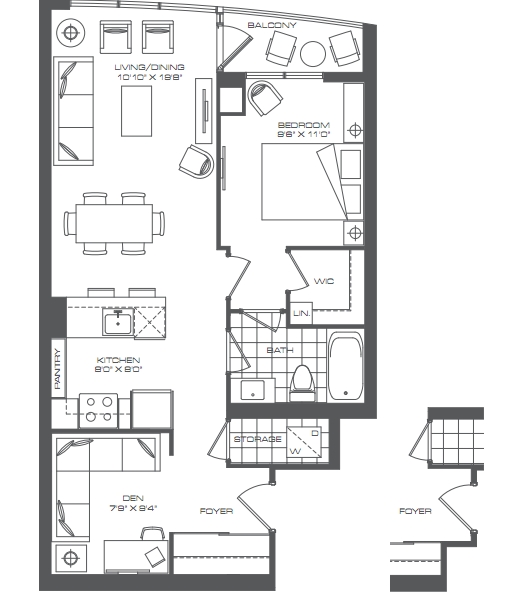 1 Bedroom + Den - 728 + 32 Sq. Ft. Plan