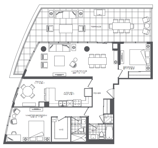 2 Bedroom - 1216 + 450 Sq. Ft. Plan