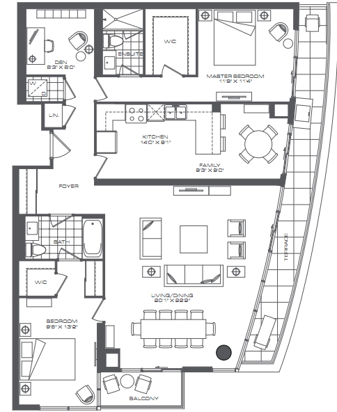 2 Bedroom + Den - 1439 + 187 Sq. Ft. Plan