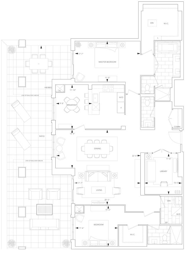 Sherwood at Huntington’s luxuriously appointed two bedroom plus library suite in Lawrence Park