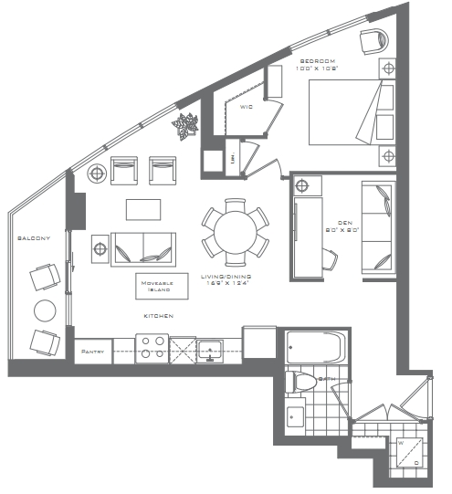 1 Bedroom + Den - 678 + 55 Sq. Ft Plan