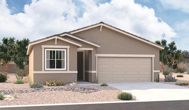Highlights of the ranch-style Juniper plan include an impressive kitchen with a roomy pantry, an open great room and a relaxing covered patio. In addition to two generous bedrooms with a shared bathroom, an elegant primary suite boasts a spacious walk-in closet and a private bath. A central laundry, convenient mudroom and 2-car garage complete the plan. Additional features may include a kitchen island and an extended covered patio.
