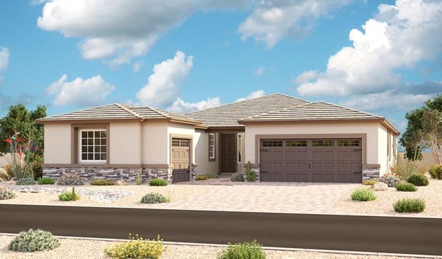 Ease and elegant design blend beautifully in the ranch-style Pomona plan. An inviting great room is at the heart of the open layout, adjacent to a dining nook and a kitchen showcasing a pantry and a center island. Aspiring top chef? Opt for gourmet kitchen features! The impressive owner's suite offers a walk-in closet and a private bath with three deluxe options, including a walk-in shower. Three additional bedrooms, a central study and a laundry round out the floor plan, which includes a covered patio, a 2-car garage and a 1-car side-turn garage. Make this home your own by choosing a formal dining room in lieu of the study or a guest suite with optional private entrance in place of bedroom 3 and 4.