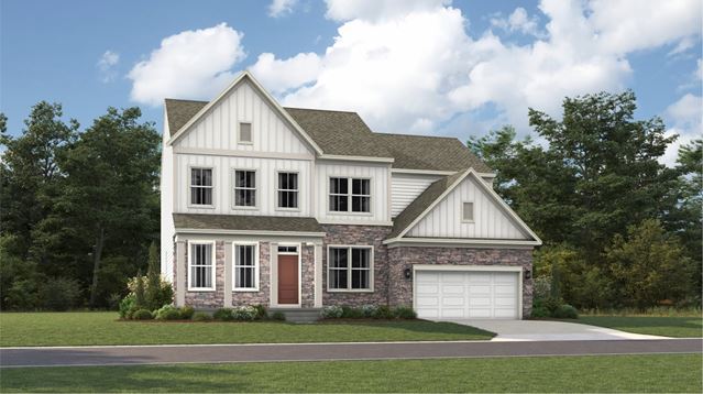 This new two-story home design is the epitome of casual elegance. The first floor showcases an open-plan layout among the Great Room, breakfast room and modern kitchen. A formal living room and dining room on either side of the foyer are ideal for entertaining. Upstairs, three secondary bedrooms and a luxe owners suite with two walk-in closets provide restful retreats for family members. An unfinished basement can be completed for additional living space.